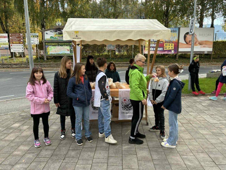Mladi člani Rdečega križa OŠ Vuzenica smo se udeležili humanitarne akcije “Drobtinica”, ki je potekala v soboto, 18.10.2025. Akcija »Drobtinica« je povezana s svetovnim dnevom hrane in bojem proti revščini .