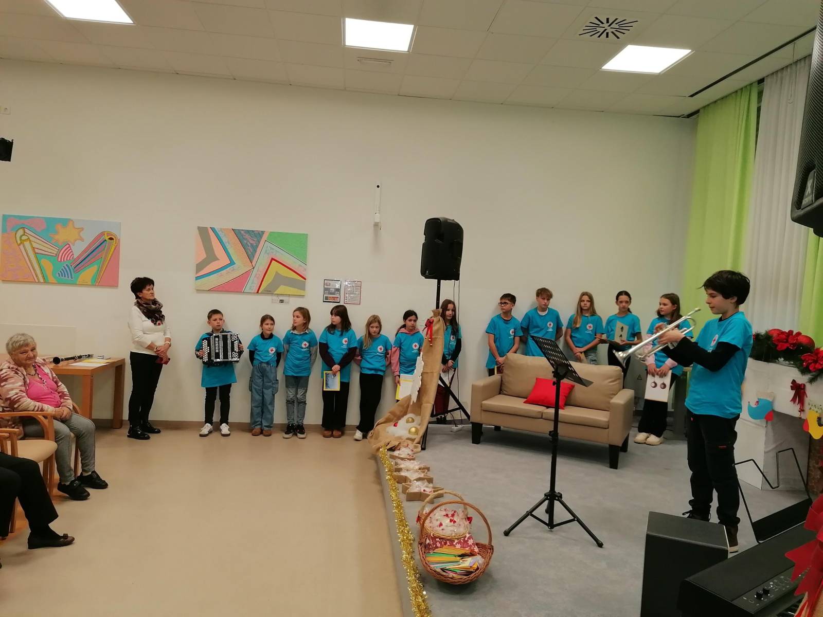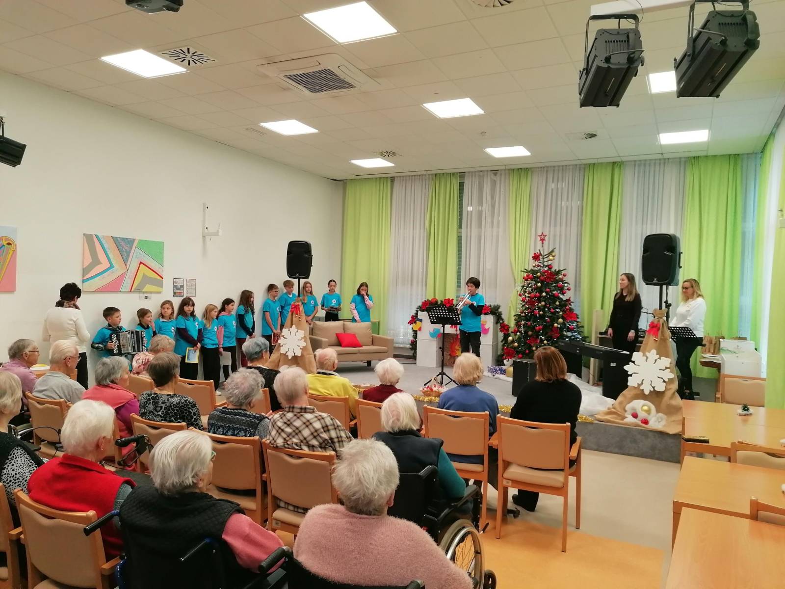 V prazničnih dneh smo mladi prostovoljci iz OŠ Vuzenica obiskali varovance v domu. S kulturnim programom in pesmijo smo jim polepšali dan, se z njimi družili, jih razveselili ter jim približali praznike. Z našo prisotnostjo smo jim pokazali, da je medgeneracijsko povezovanje zelo pomembno, da v teh prazničnih dneh niso sami.