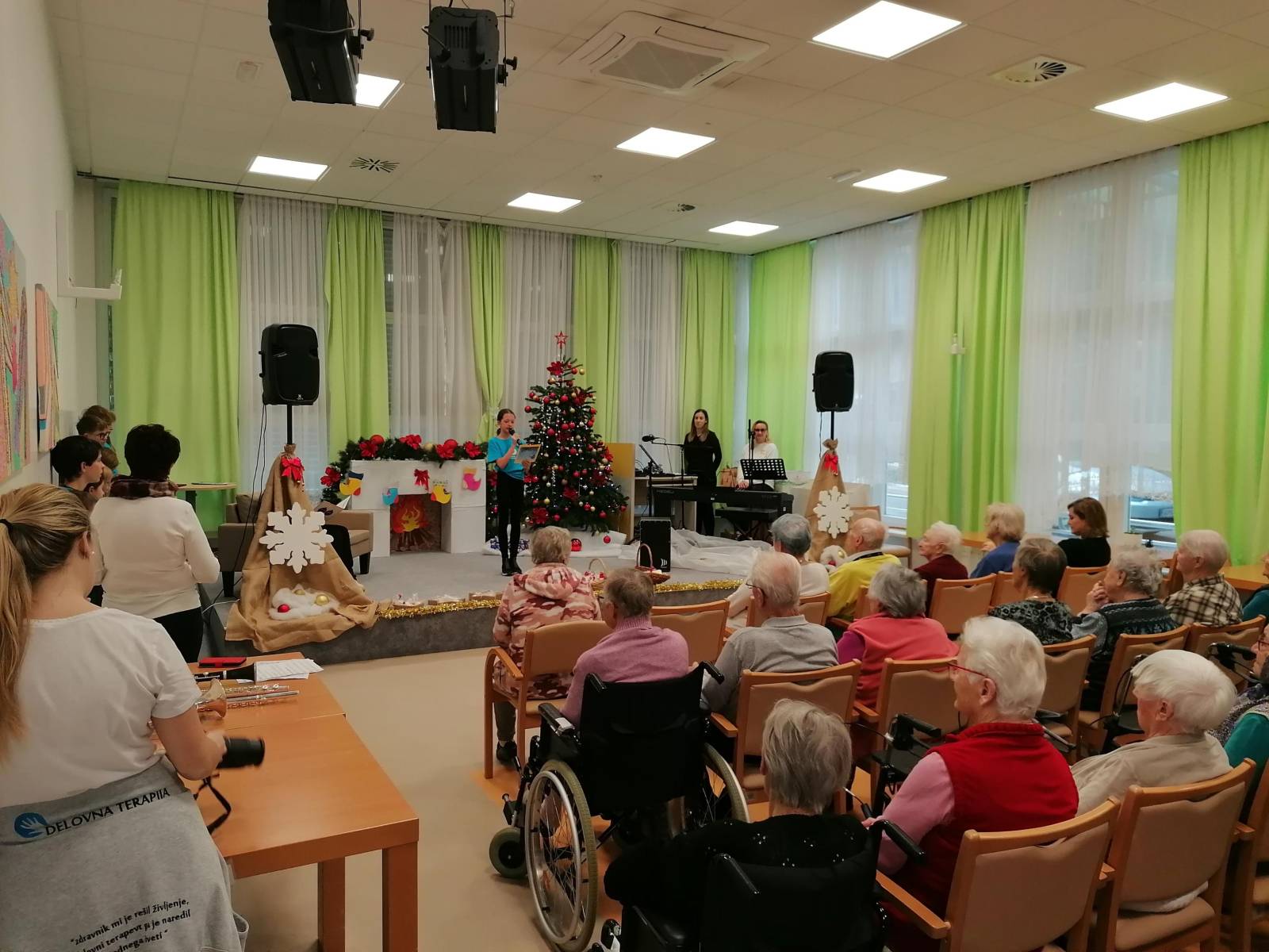Pripravili smo jim kulturni program, v katerem so se prepletale pesem, glasba, recitacije in prijazne besede. Ko so se zaslišali prvi toni in so glasovi zapeli, so se na obrazih varovancev pojavili nasmehi – tisti topli, iskreni nasmehi, ki povedo več kot tisoč besed. Nekateri so tiho prepevali, drugi so ritmično premikali noge, marsikdo pa je z nežno solzo v očeh obujal spomine na čase, ko so sami ustvarjali praznična doživetja.