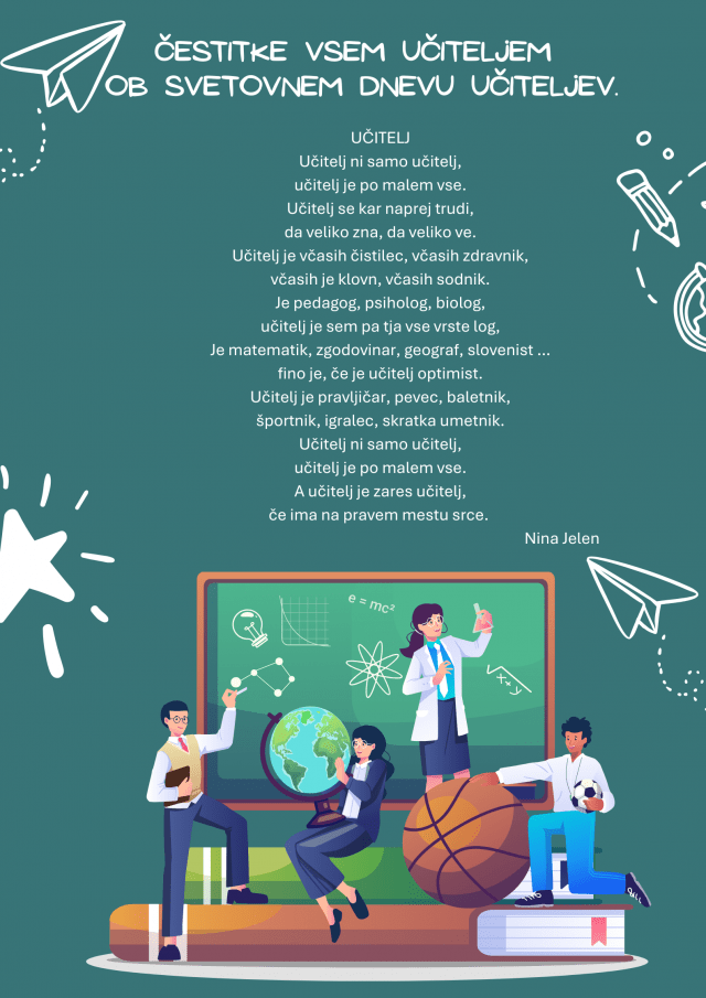 Čestitke vsem učiteljem in vzgojiteljem ob svetovnem dnevu učiteljev