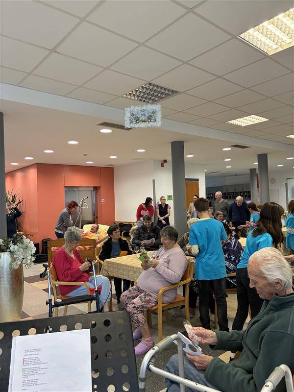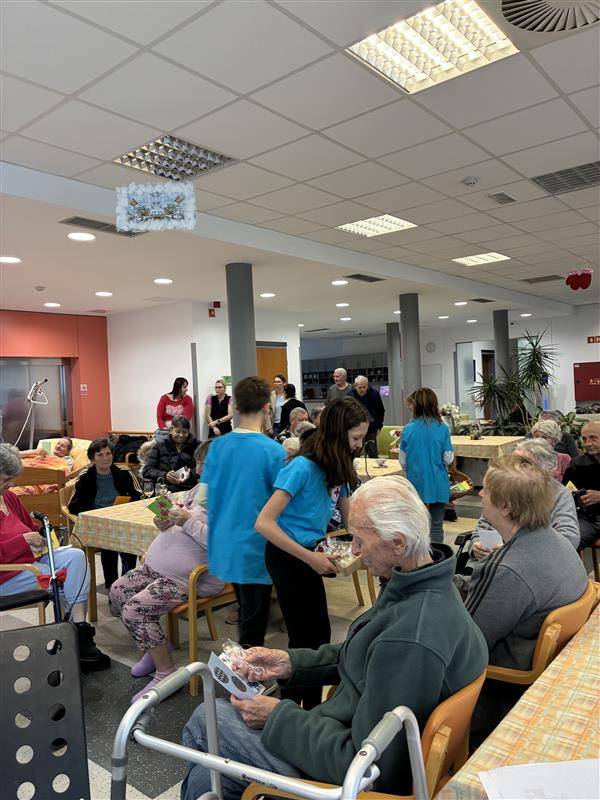 V prazničnih dneh smo mladi prostovoljci iz OŠ Vuzenica obiskali varovance v domu. S kulturnim programom in pesmijo smo jim polepšali dan, se z njimi družili, jih razveselili ter jim približali praznike. Z našo prisotnostjo smo jim pokazali, da je medgeneracijsko povezovanje zelo pomembno, da v teh prazničnih dneh niso sami.
